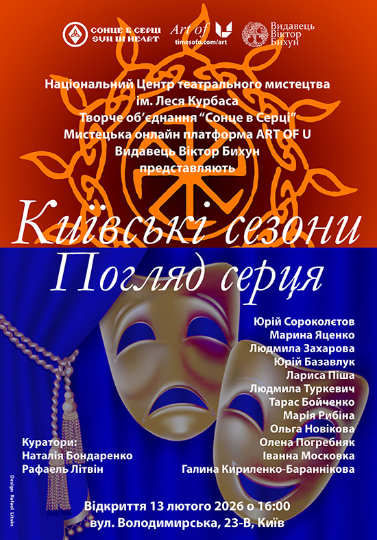 On January 13, 2026, the Les Kurbas National Centre for Theatrical Art opened the painting exhibition “A View of the Heart” as part of the art project “The Kyivan Seasons” of the Creative Association “Sun in Heart” with the support of the online art platform ART OF U and publisher Viktor Bykhun ( https://bykhun.org ).